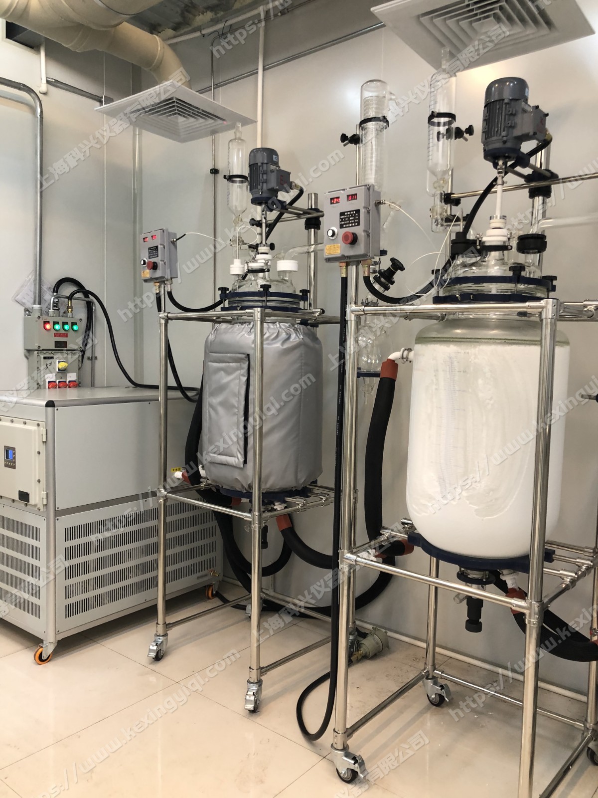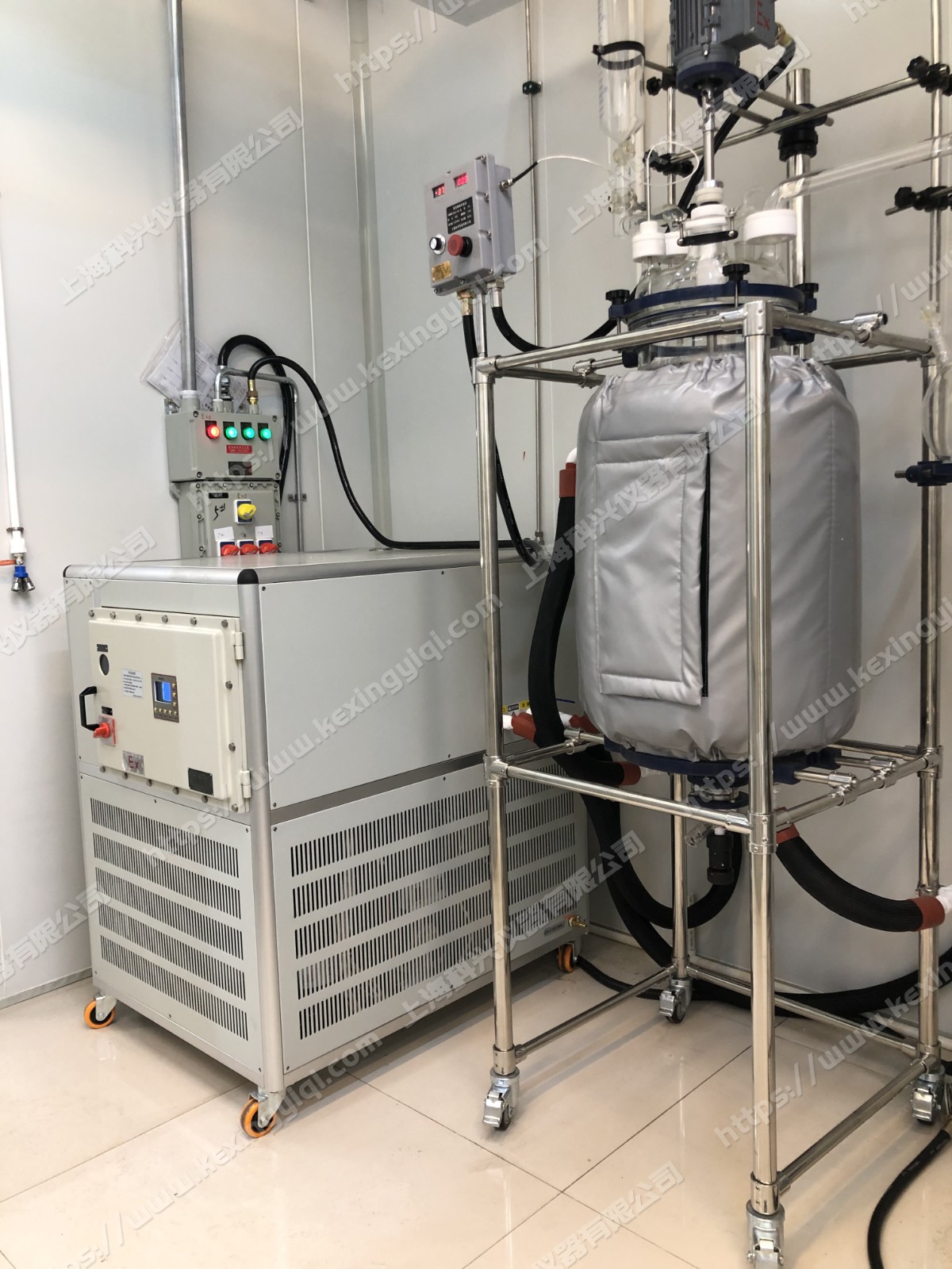 Lifting jacketed glass reactor